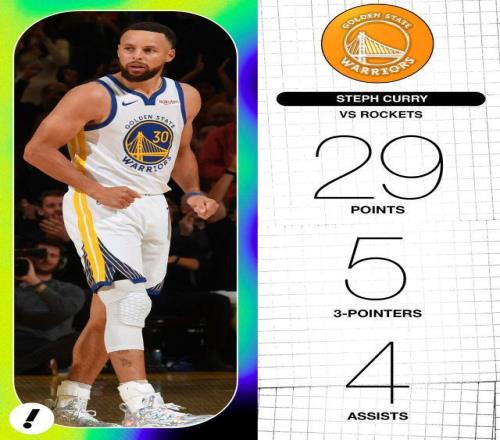 此役库里时隔27场完成复出,他替补出战26分钟,得到29分4助攻2篮板,三分线外10中5。在他登场的时间里,勇士赢了火箭12分,但在库里休息的22分钟内,勇士输掉13分。除了库里,波杰姆斯基18分,“追梦”格林7分12助攻6篮板。