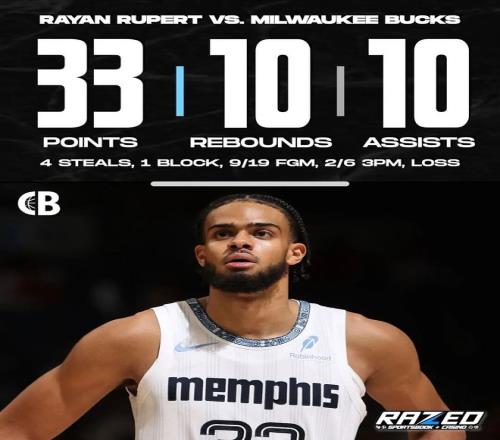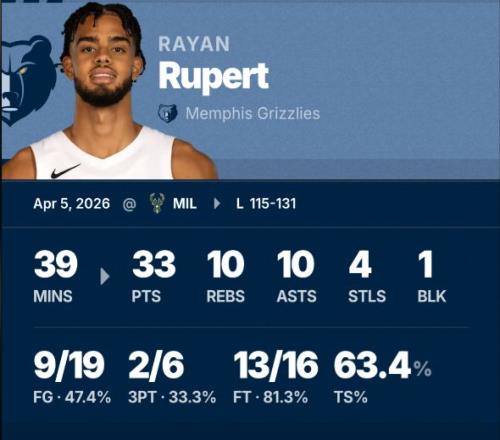 今天打雄鹿,吕佩尔全场出战39分钟,19投9中,三分6中2,罚球16罚13中,狂砍33分10篮板10助攻外加4抢断1盖帽!