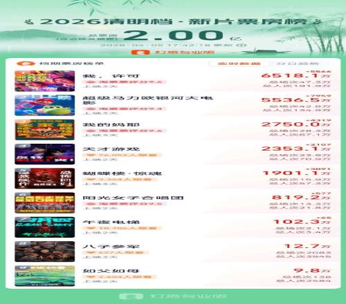 体育播报4月5日宣据灯塔专业版,截至4月5日17时42分,2026年清明档新片总票房(含点映及预售)突破2亿,影片《我,许可》《超级马力欧银河大电影》《我的妈耶》《天才游戏》《蝴蝶楼·惊魂》暂列前五。电竞免费观看_游戏免费观看_综合游戏免费观看_电竞高清在线_游戏高清在线_综合游戏高清在线